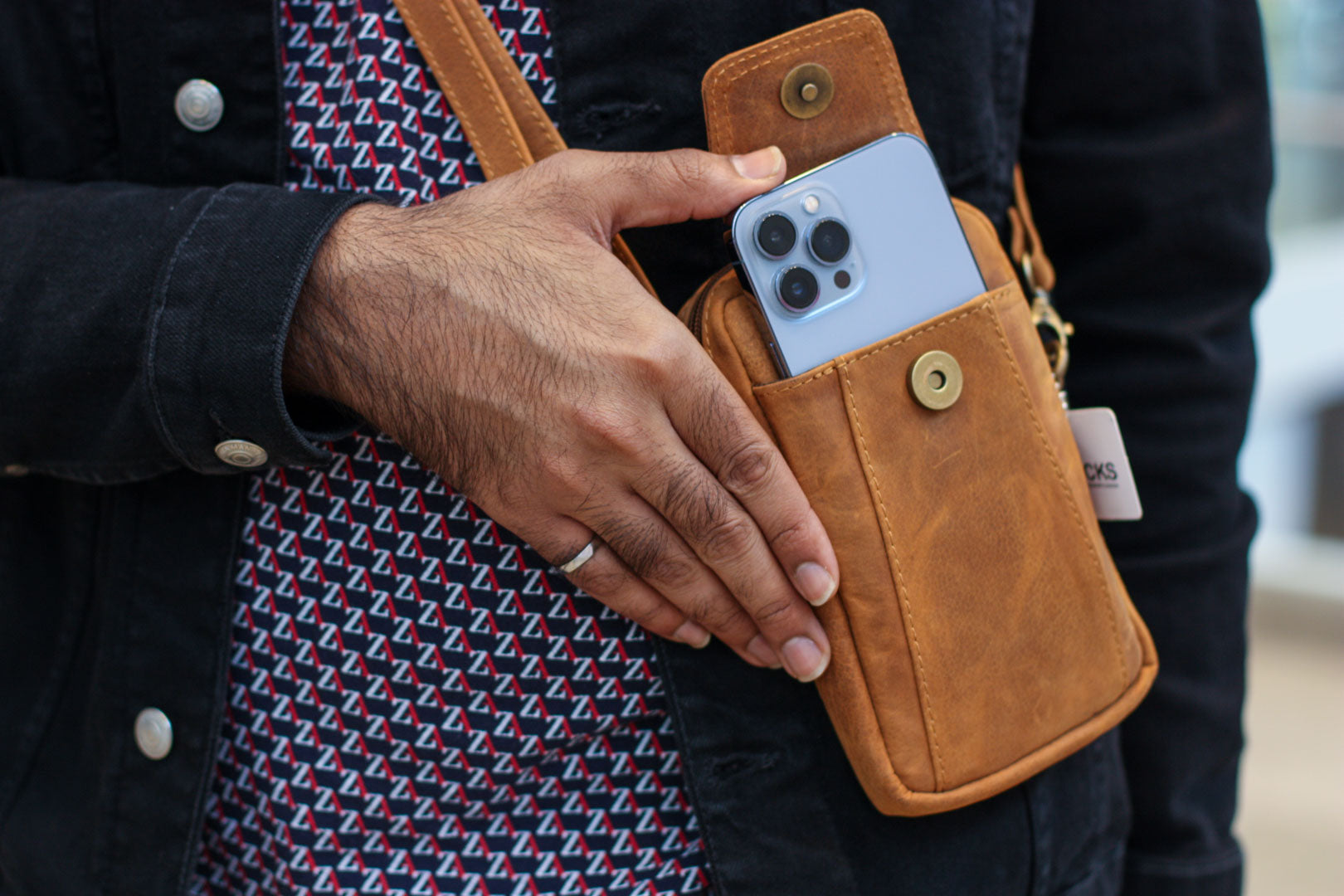 Our smallest crossbody bag that can also be put on your belt. Perfect for travelling while carrying your valuables close to you or for carrying your phone and tools for work.